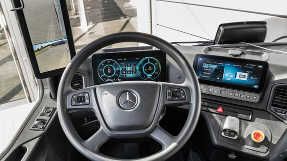 A digitális pilótafülke új szintre emeli a kényelmet és a biztonságot. Az olyan bevált segédrendszereket, mint a stabilitásszabályozó, sávtartó, éberségfigyelő és kanyarodás asszisztens, a MirrorCam egészíti ki. A külső képet a pilótafülkében lévő két 15 colos kijelzőre továbbítja, és így a teherautó egészére kiterjedő kilátást biztosít. A MirrorCam és az asszisztensrendszerek segítenek abban, hogy az eActros biztonságosan, aerodinamikusan és hatékonyan közlekedjen a nagy városi elosztóforgalomban.