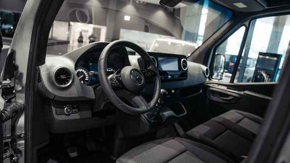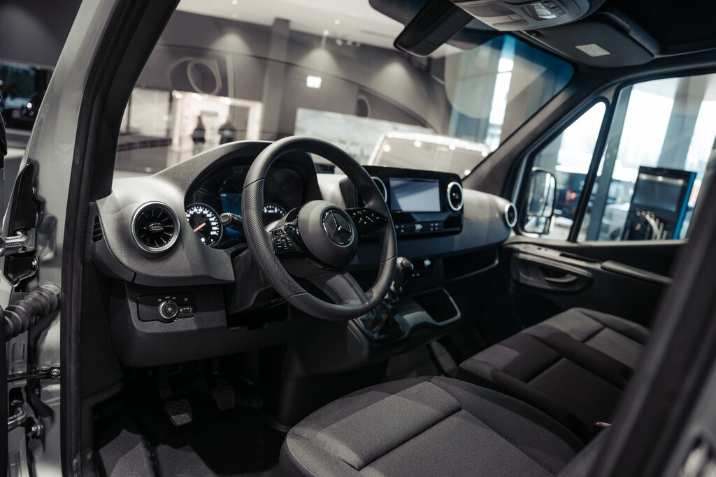 Multifunkciós kormánykerék, MBUX multimédia-rendszer[5] és digitális belső visszapillantó tükör[5] valamint praktikus polcok, kényelmes ülések és hatékony légkondicionáló[5]: a Sprinter zárt áruszállító vezetőfülkéje mindent kínál, amit egy mobil munkahelytől elvár. A rakteret pedig pontosan az Ön egyéni kívánságai szerint alakíthatja ki robusztus padlóburkolatokkal és fából vagy műanyagból készült falburkolatokkal, különböző válaszfalakkal és rugalmas rögzítőrendszerekkel.