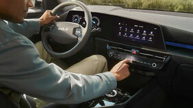 Fedezd fel a Kia előremutató, új stílusvilágát – az egyesített ellentéteket – a kormány mögött is! Az eredetien merész kialakítást a műszerfal és az ajtókárpit vízszintes és átlós formái emelik ki, miközben az intuitív, felhasználóbarát funkciók mindegyike kézre áll. A belső teret az állítható, vonalmintás hangulatvilágítás teszi még hangulatosabbá.